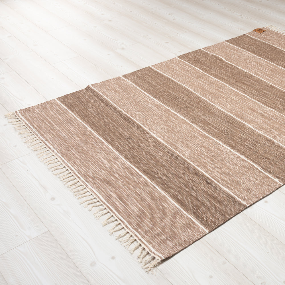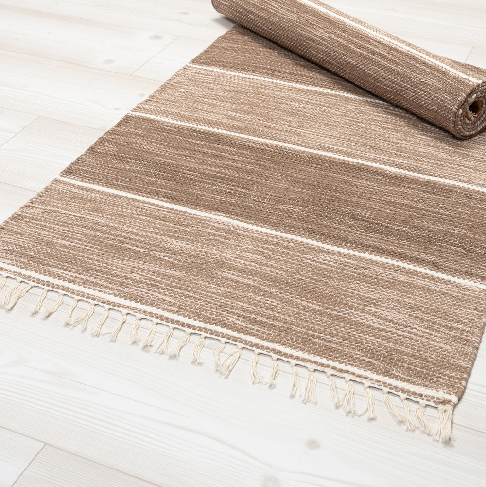 En klassisk och elegant trasmatta i 100% bomull. Ida skapar med sin stilrena design bÄde karaktÀr och en varm atmosfÀr i hemmet. Bomullsmaterialet gör mattan mjuk att gÄ pÄ samtidigt som den Àr hÄllbar för vardagens slitage. Det tidlösa mönstret bidrar till en inbjudande kÀnsla i rummet, mattan Àr dessutom vÀndbar vilket gör den bÄde praktisk och lÄnglivad.